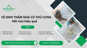 Dịch vụ giặt thảm chuyên nghiệp cho mọi loại thảm, sử dụng hóa chất an toàn kết hợp với máy móc hiện đại, loại bỏ mọi vết bẩn cứng đầu, mang lại thảm sạch đẹp như mới.